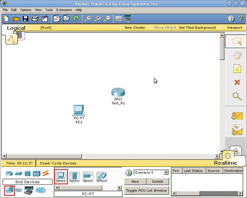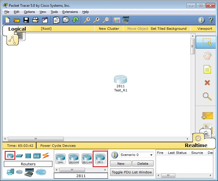 Обратимся к PT. Начнём с создания маршрутизатора: выбираем его на панели внизу и переносим на рабочее пространство. Даём какое-нибудь название: