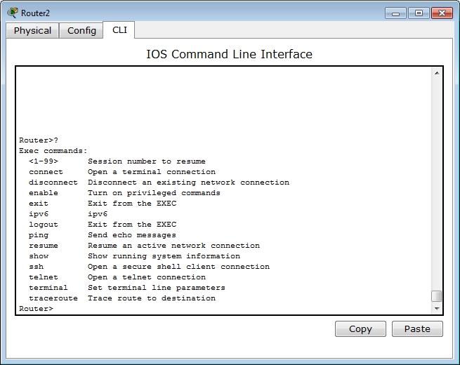 Это стандартное совершенно для любой линейки cisco приглашение, которое характеризует пользовательский режим, в котором можно просматривать некоторую статистику и проводить самые простые операции вроде пинга. Ввод знака вопроса покажет список доступных команд: Грубо говоря, это режим для сетевого оператора, инженера первой линии техподдержки, чтобы он ничего там не повредил, не напортачил и лишнего не узнал. Гораздо большие возможности предоставляет режим с говорящим названием привилегированный. Попасть в него можно, введя команду >enable. Теперь приглашение выглядит так: